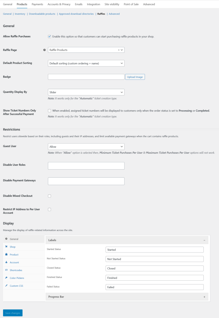 ↑ Back to topAfter activation of Ultimate Raffle, navigate to: WooCommerce > Settings > Products > Raffles to setup the plugin settings.