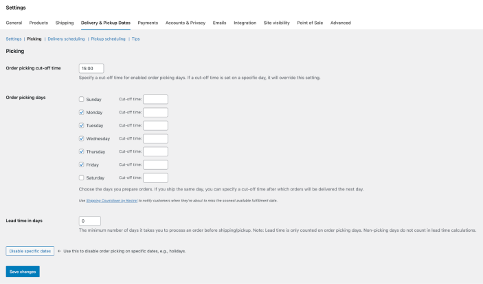 How to configure Picking Days and Lead Time in Order Delivery for WooCommerce.