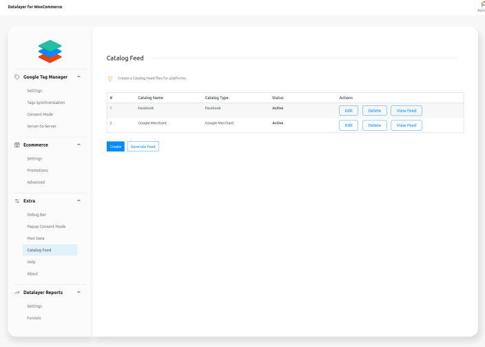 Create multiple Catalog Feed files for platforms: Google Merchant Center (Read more) and Facebook Catalog -> (Read more)