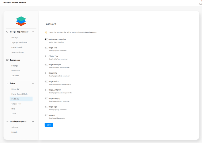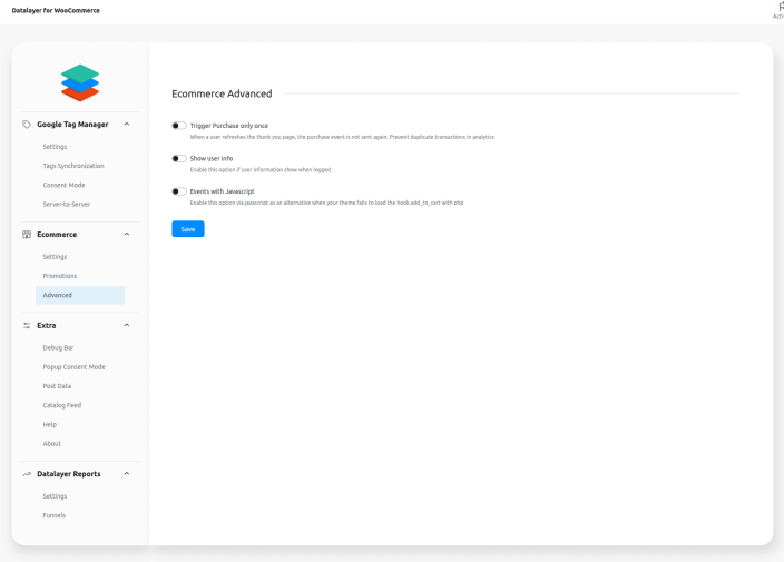 ↑ Back to topGo to menu WooCommerce > Datalayer for WooCommerce: