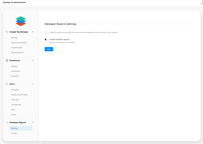 ↑ Back to topEnable this option to save DataLayer events locally and generate reports directly on your website.