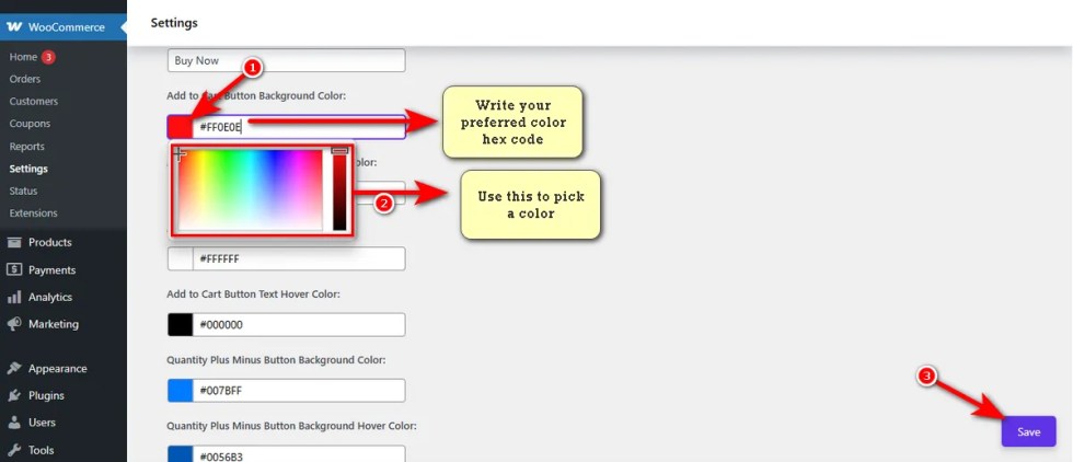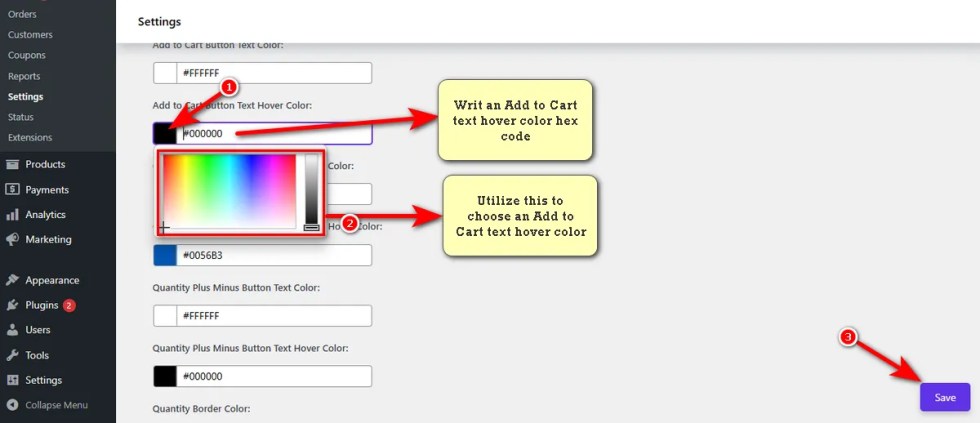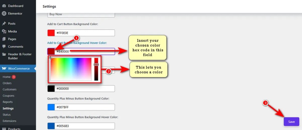 This color picker allows you to set the primary background color for the “Add to Cart” button in its normal state.