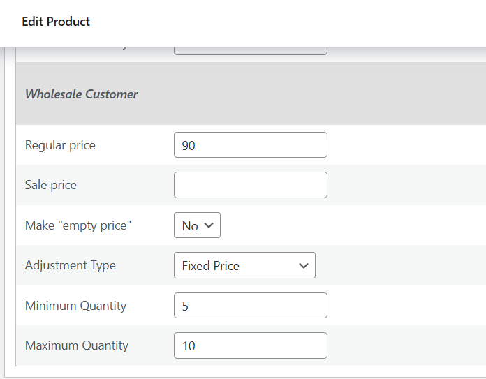 When you enable the Price by User Role: Per Product Settings, these user roles will appear on all product’s Edit Product page.