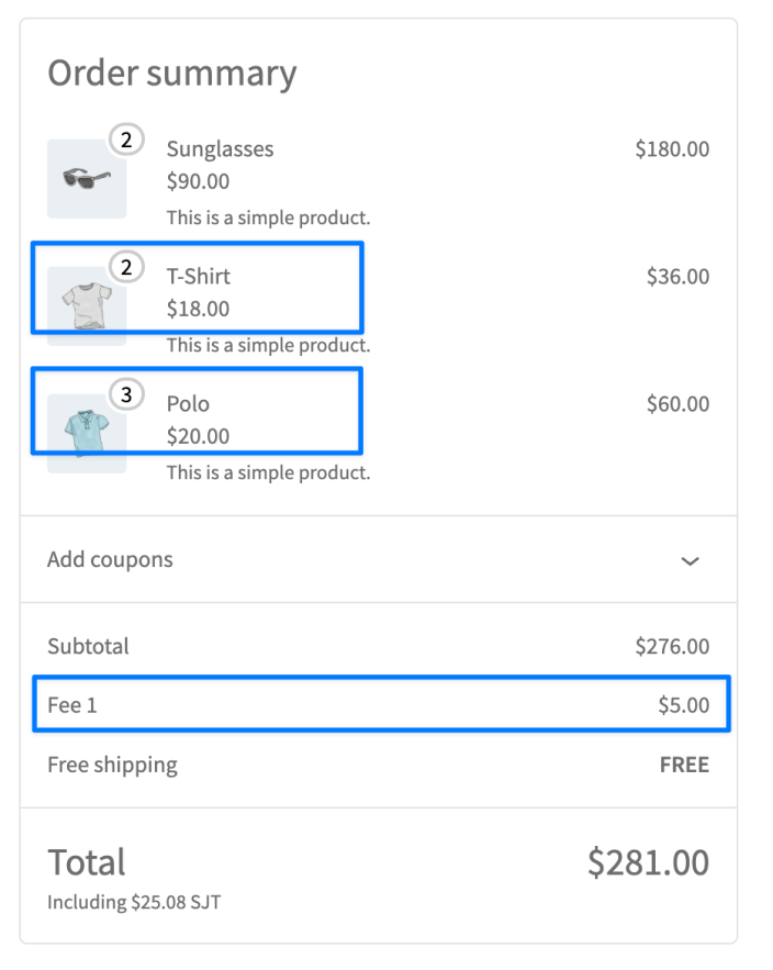 Order total fees apply additional charges based on the cart’s total value. This fee is often used for small orders that don’t meet certain thresholds, such as minimum purchase amounts for free shipping.