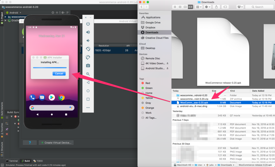 3. Drag and drop the .apk file from your computer to the running simulator: