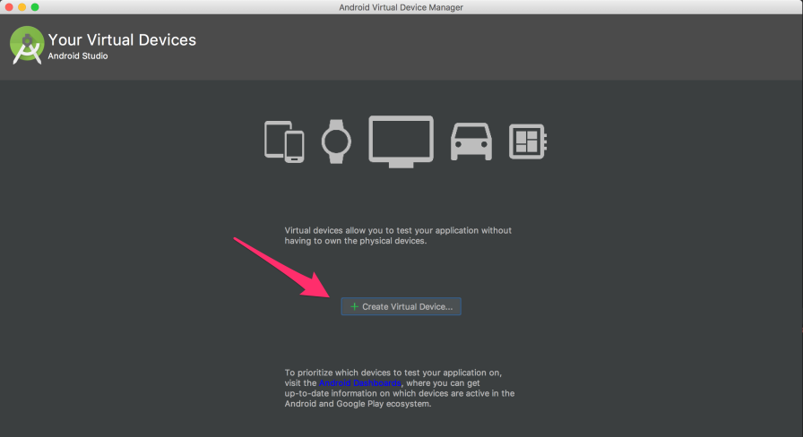 8. The AVD Manager will open a screen where you can Create Virtual Device: