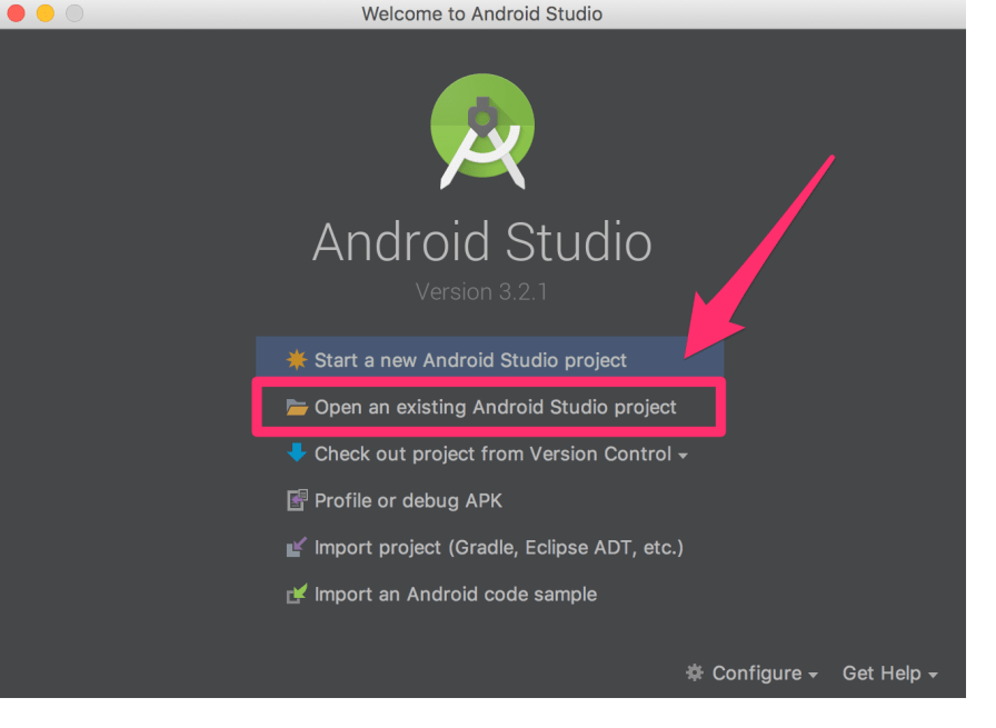 5. When asked to Open an existing Android Studio project, select that unzipped folder and click Ok.