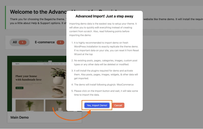 Now, let’s dive into the steps to import the Bagaicha demo into your website.