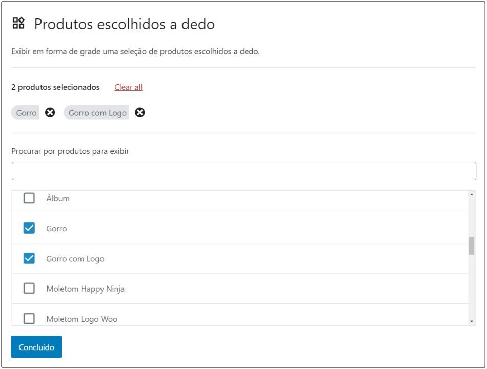 Desde o WooCommerce 3.6, nós incluímos alguns blocos excelentes (disponível somente em inglês) que você pode usar para incluir os produtos em qualquer parte, usando o novo editor do WordPress. Consulte a documentação do editor do WordPress (disponível somente em inglês) para saber mais sobre os blocos e o novo editor.