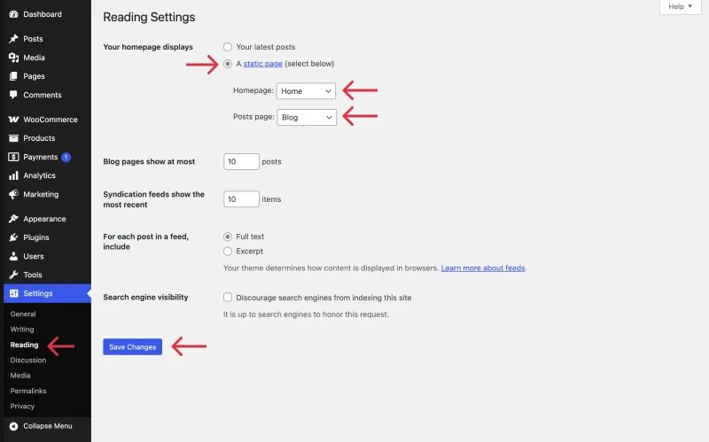 To manually create and assign a custom homepage and blog page, follow these steps: