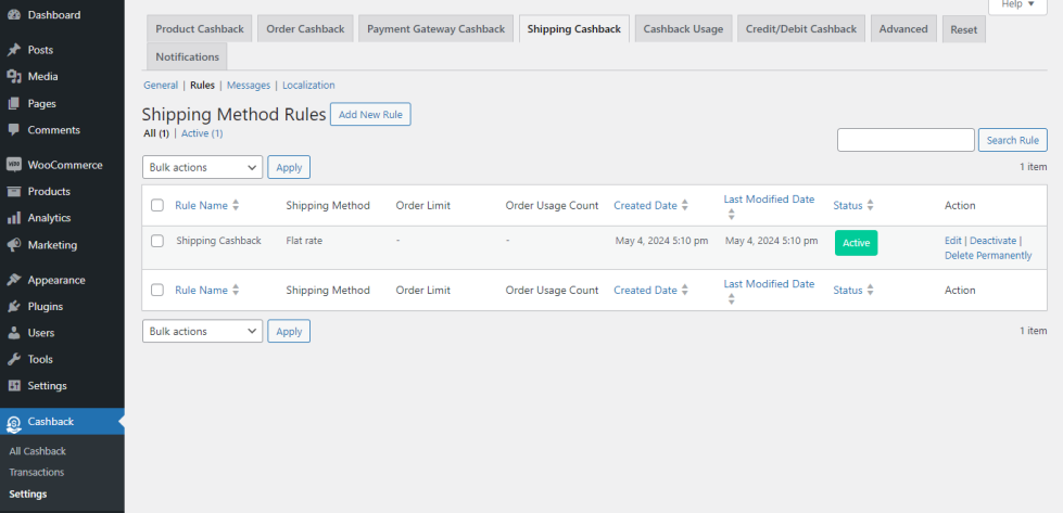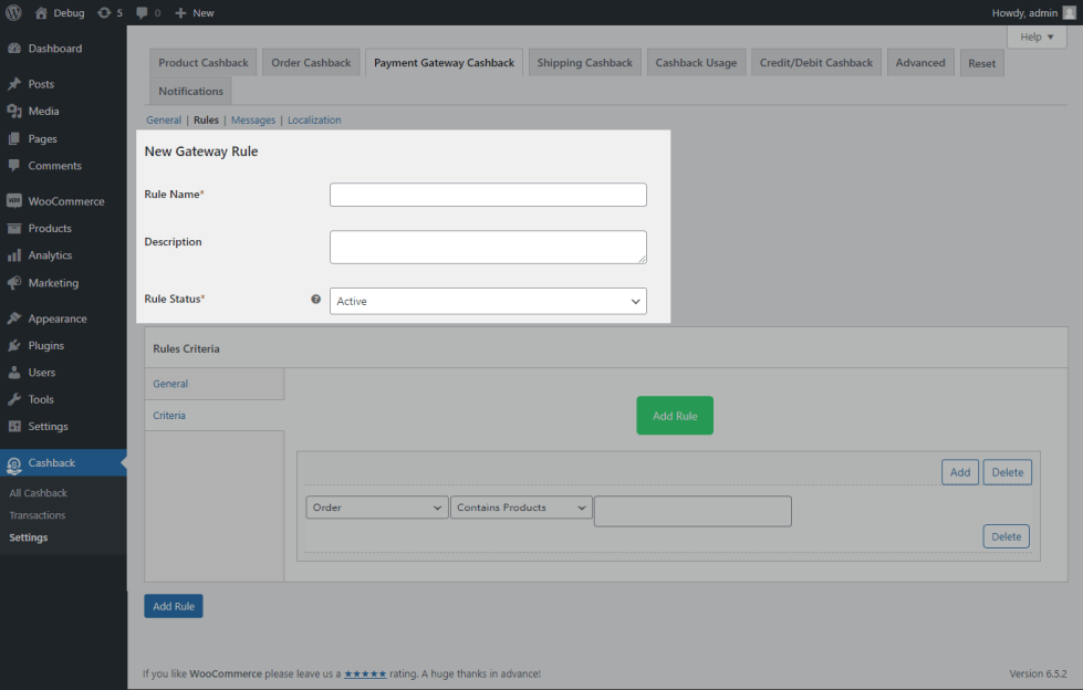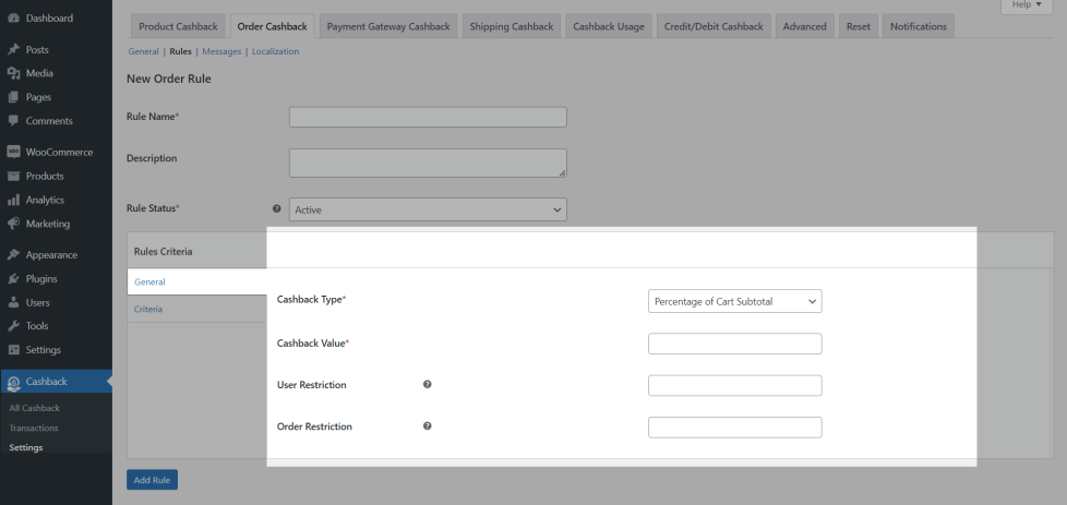 - In the Rule Status option, if the rule is set to Active, the rule will be considered for Cashback.