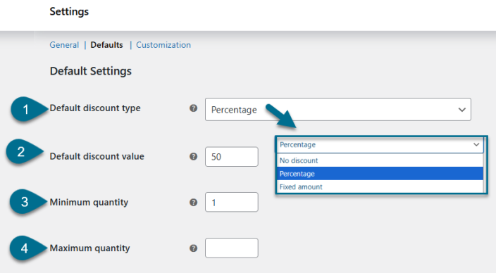 - Default Discount Type – Select the default discount type applied to bundles.