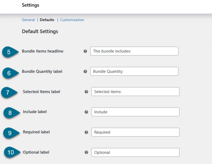 ↑ Back to topHere, you can configure default values and labels that are automatically applied when creating new bundle products.