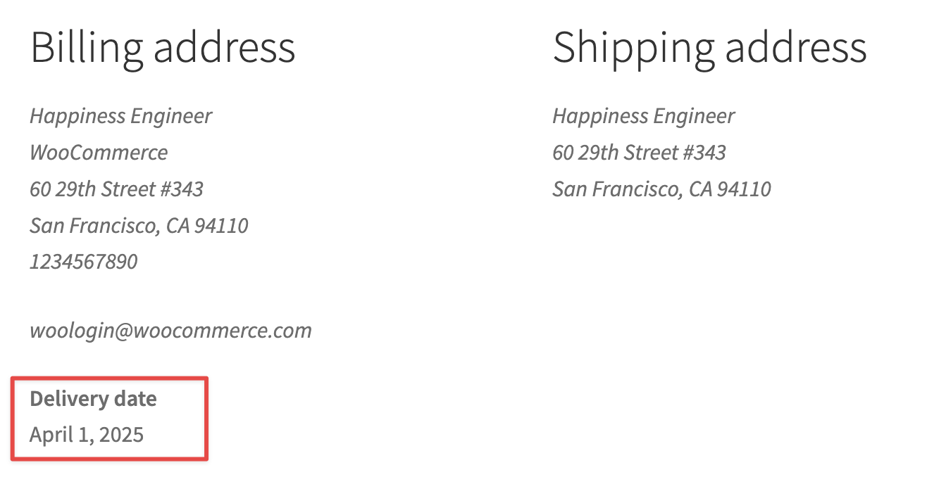 โ Back to topConsider the following example of adding a date picker field. These images below show you the field set up, how it appears at checkout, and then ultimately what you see after placing an order. This field is shown when viewing an order in wp-admin, in emails, and the order details page your customers see.