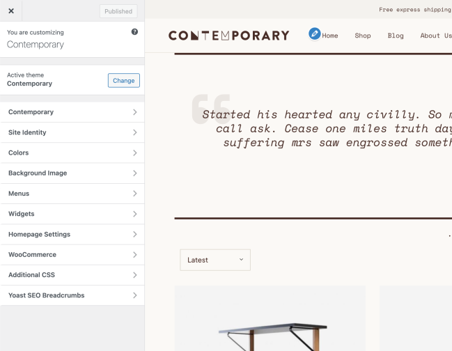 ↑ Back to topYour customization settings are within Appearance > Customize > Contemporary.