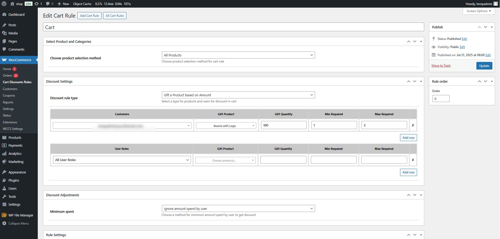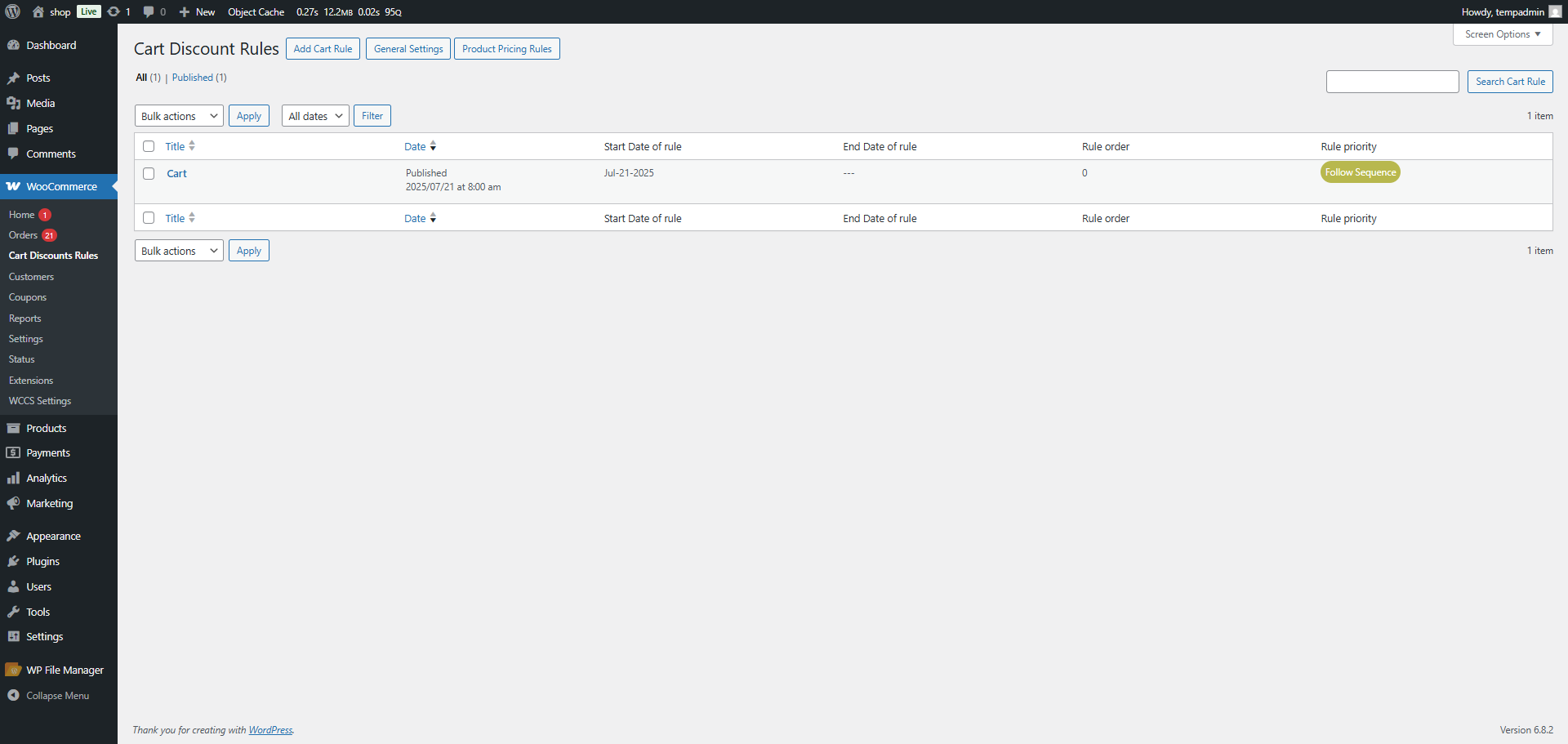 - Navigate to: WooCommerce > Cart Discount Rules.