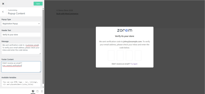 ↑ Back to topCustomer Email Verification Pro helps WooCommerce store owners reduce spam registrations and fake orders by requiring customers to verify their email address using a One-Time Password (OTP).