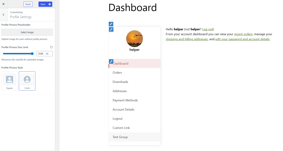 • Account Profile Picture – Allow customers to upload a profile picture on their WooCommerce account page