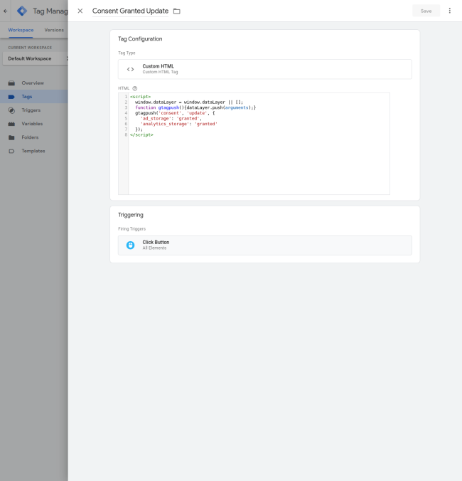 After configuring the tags, you must choose how to trigger the Tracking Consent State:
