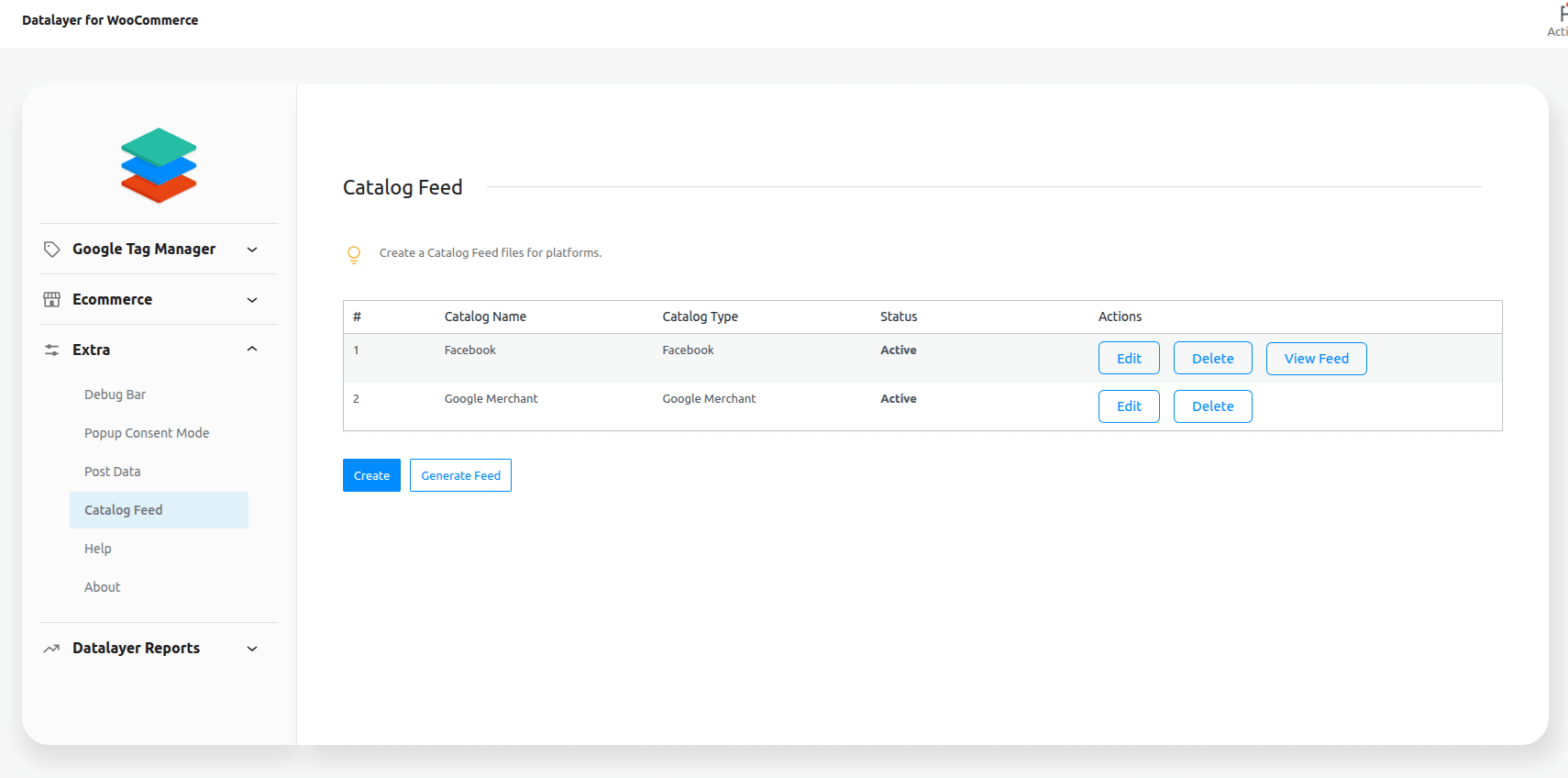 After creating, click on Generate Feed and then View Feed to view the catalog: