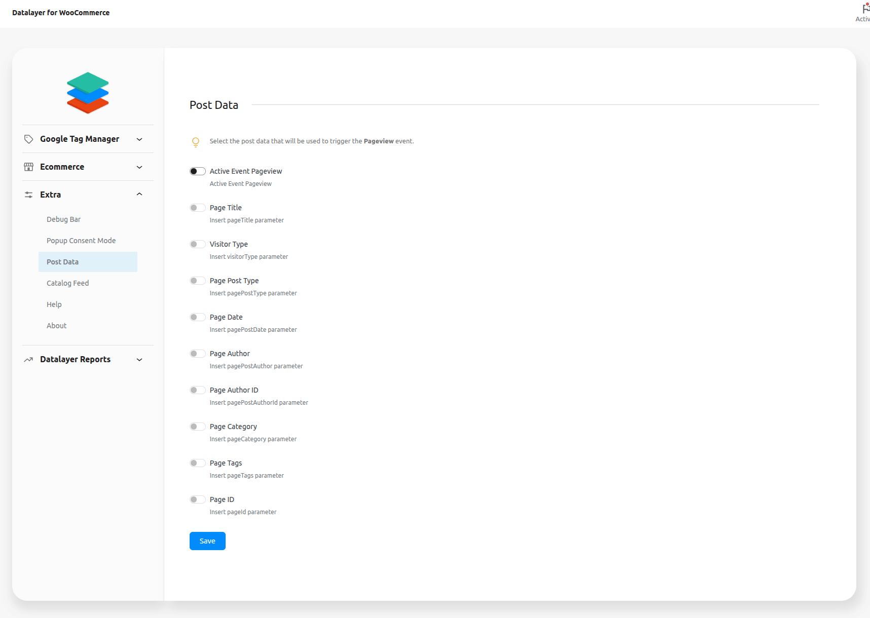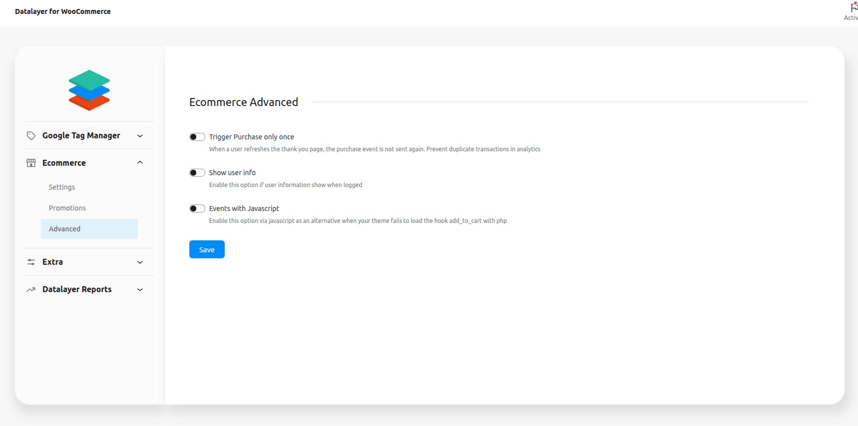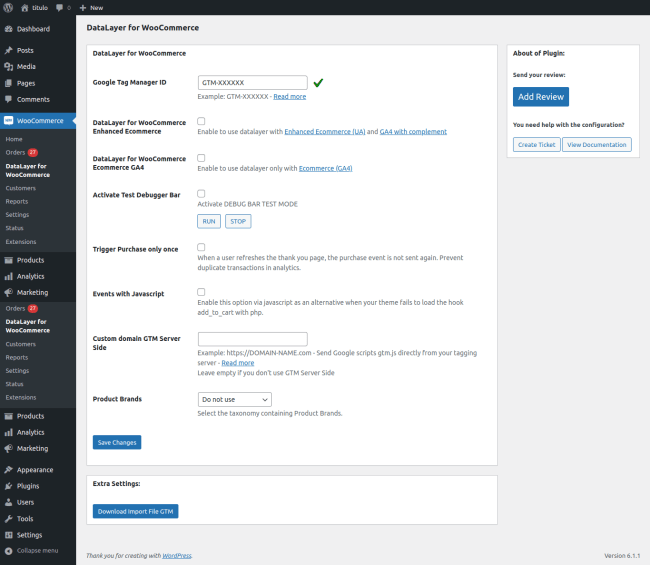 ↑ Back to topGo to menu WooCommerce > Datalayer for WooCommerce: