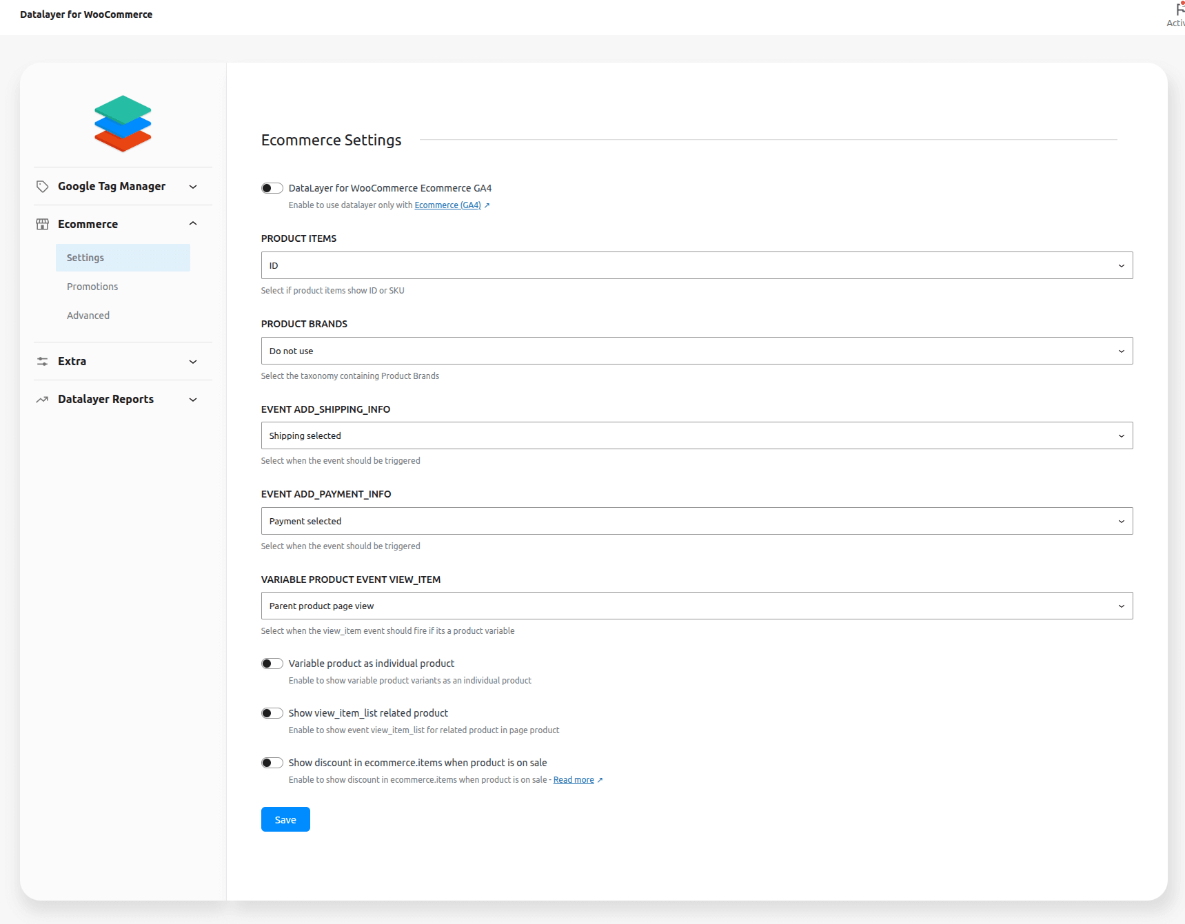 ↑ Back to topIf you want to customize Datalayer for WooCommerce using hooks go to Developer Resources documentation.