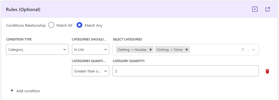 - Condition type – Category Combination (Hoodies, T Shirts)