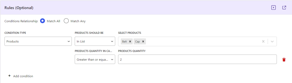 - Condition – Quantity greater than or equal to 2