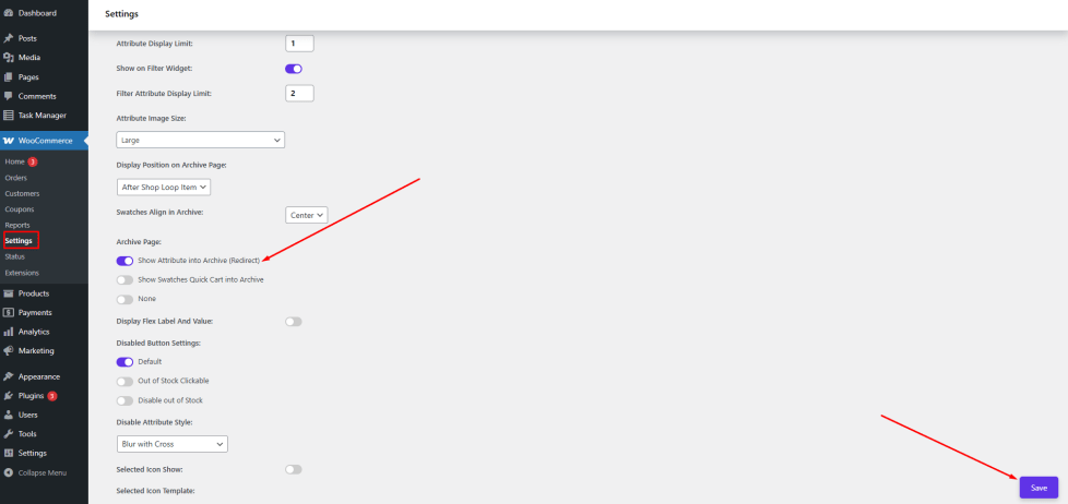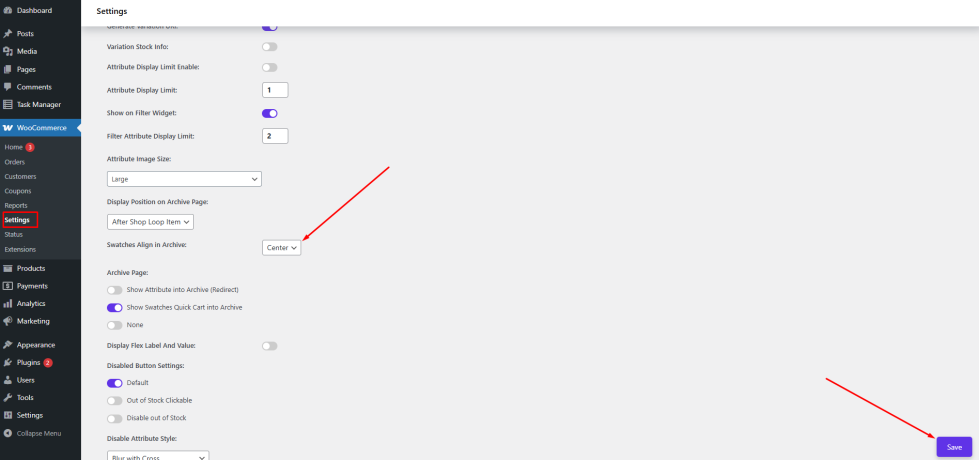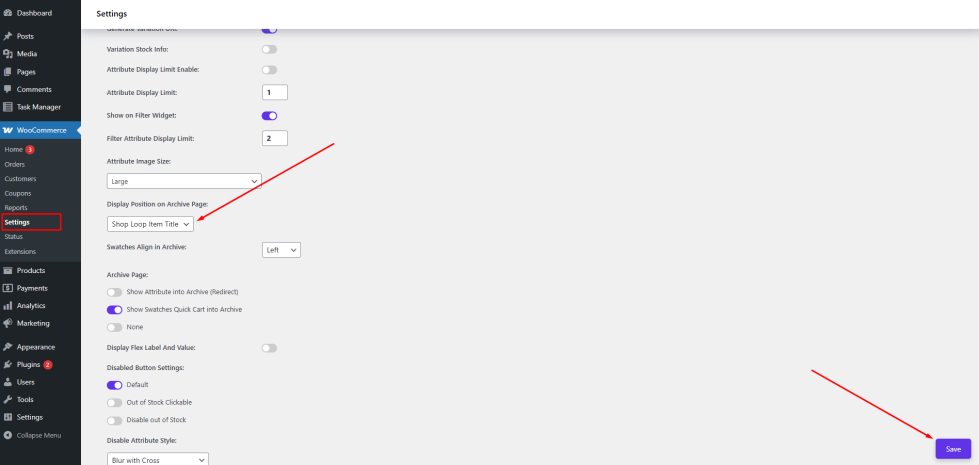 - Navigate to the Variation Swatches settings section.