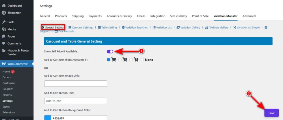 This toggle switch controls the visibility of sale prices within your variation tables and carousels.