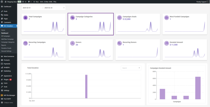 ↑ Back to top- Go to WordPress Admin Dashboard > WC Donation > Dashboard.