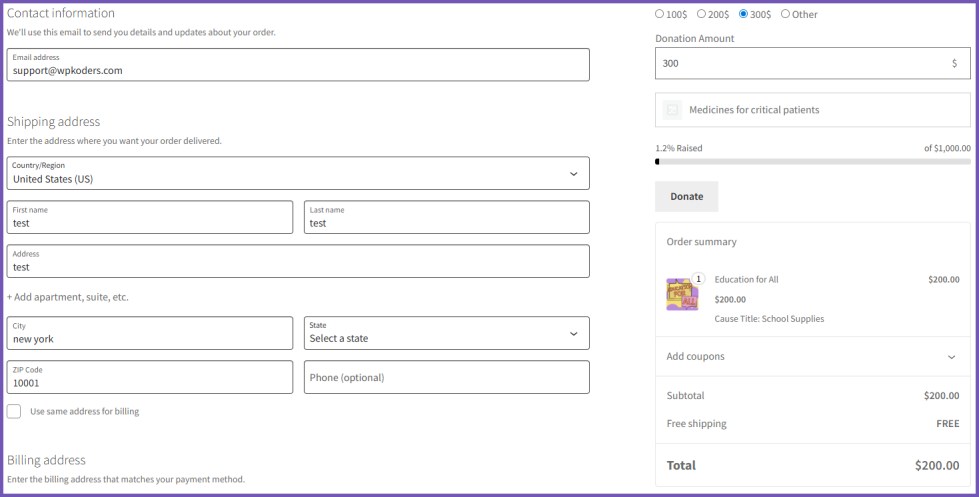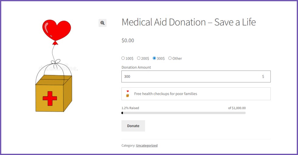 - Label: Name of the donation option (e.g., “Support a Cause”).