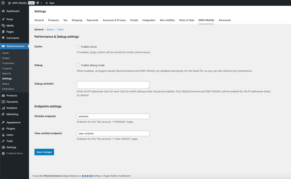 - Go to: WooCommerce > Settings > DWH WISHIFY.