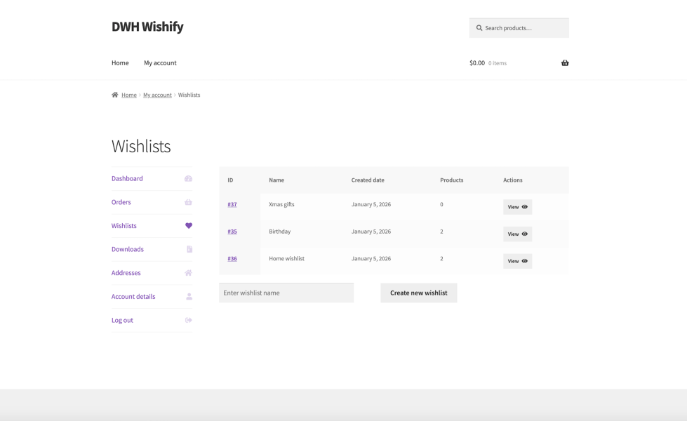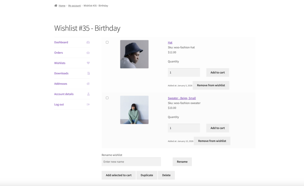 ↑ Back to topCustomers can add products to an existing wishlist or to a new one.