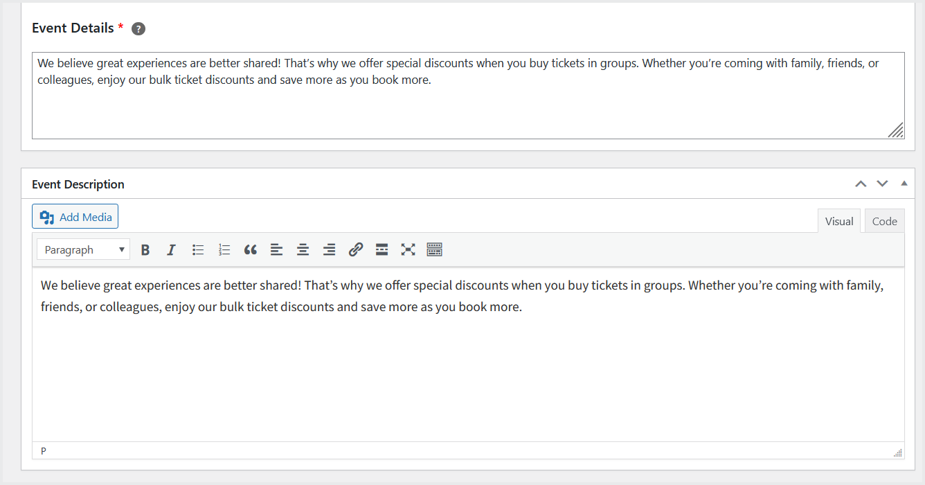 Click the “Add New Event” button to create a new event and you will be redirected to the “Add Event” page.