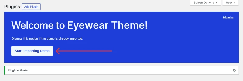 ↑ Back to topAfter activating the plugins, you’ll see another prompt to import the demo content. Click “Start Importing Demo” to be redirected to the Demo Import page.