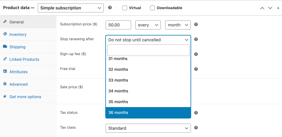 For example, the plugin below includes code that will offer a subscription that lasts for 36 months. You can change the 36