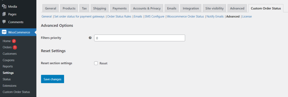 ↑ Back to topTo go to Advanced settings section follow the path WooCommerce -> Settings -> Custom Order Status -> Advanced as shown below: