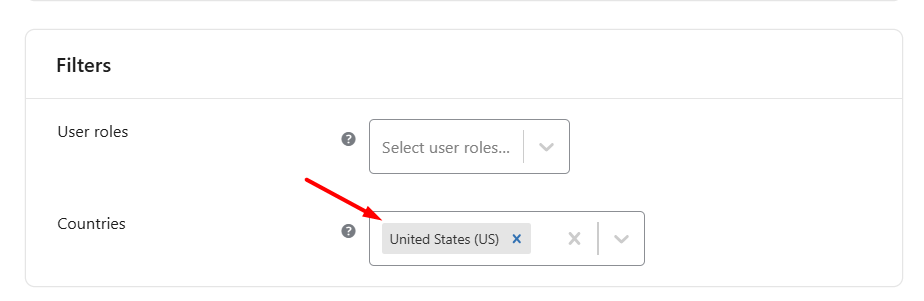 For example, selecting United States means the rule will apply only if the billing country is the United States.