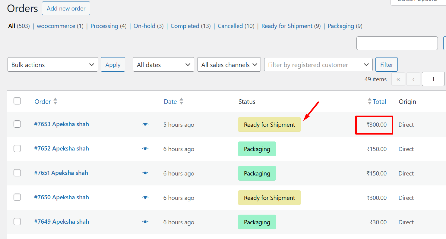 You can view the updated order status, changed from ‘Packaging’ to ‘Ready for Shipment‘, on the View Orders page.