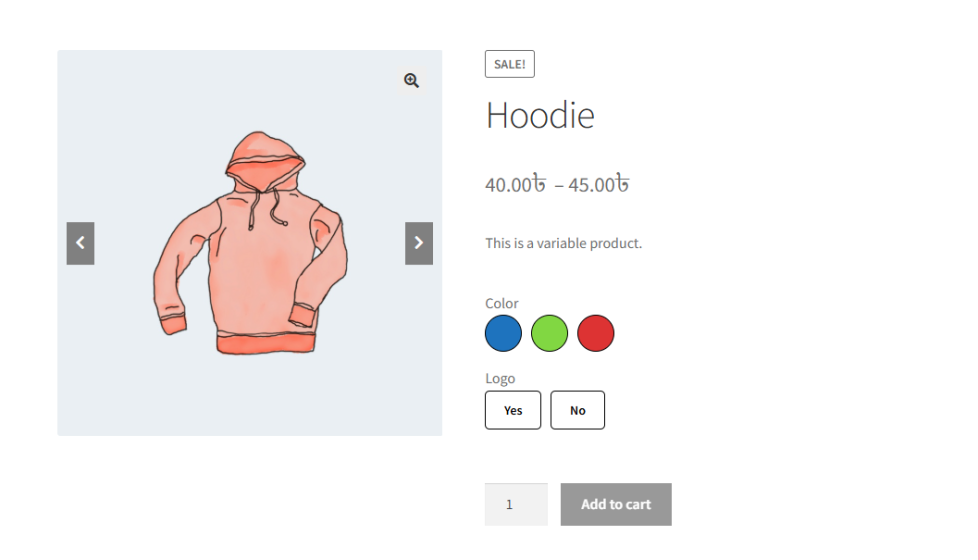 In some gallery templates (such as Template One), navigation buttons like Next and Previous are used to browse through variation images.