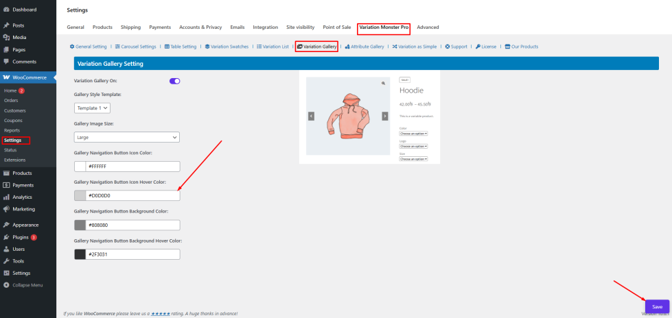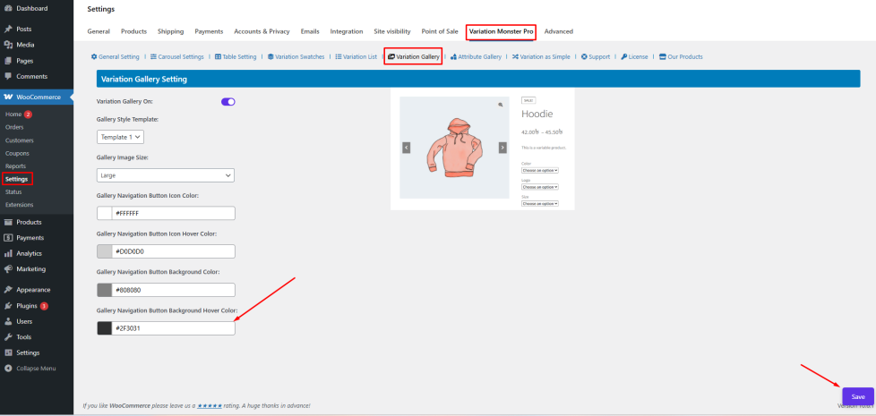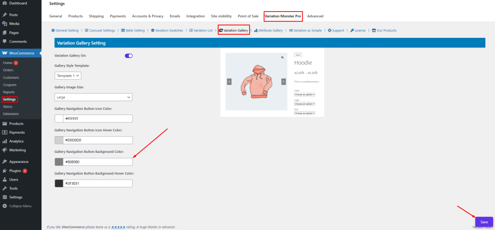 The Gallery Navigation Button Icon Color setting allows the admin to control the color of the navigation icons (arrows).