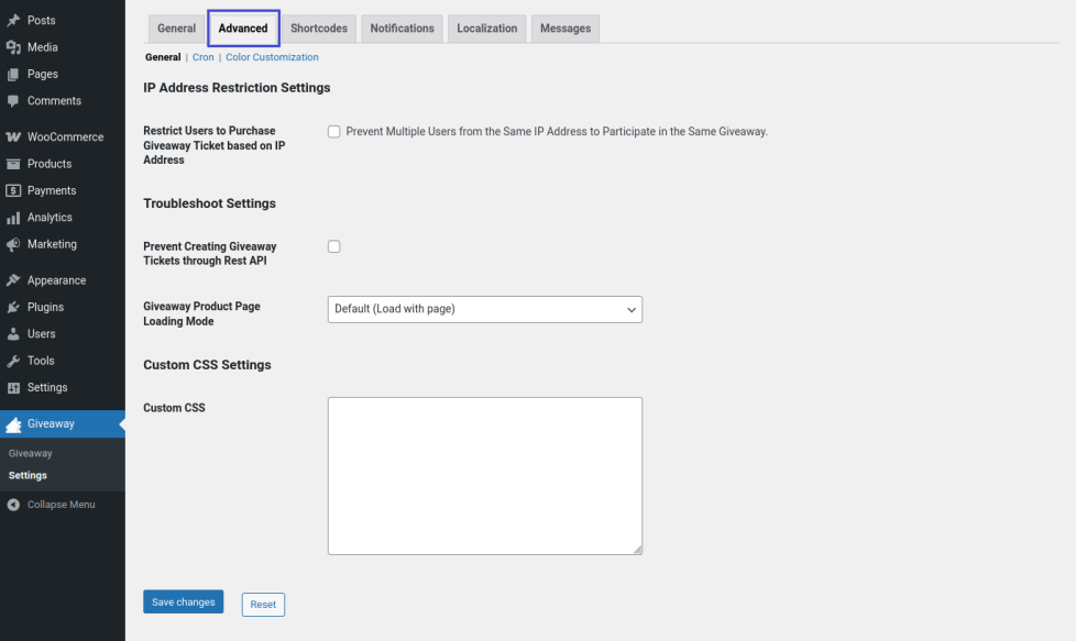 - Once the plugin is installed, a page for displaying the giveaway products will be automatically created and assigned. If you want to modify the page in which the giveaway products are displayed, you can do so by selecting a different page in the “Giveaway Page” option.