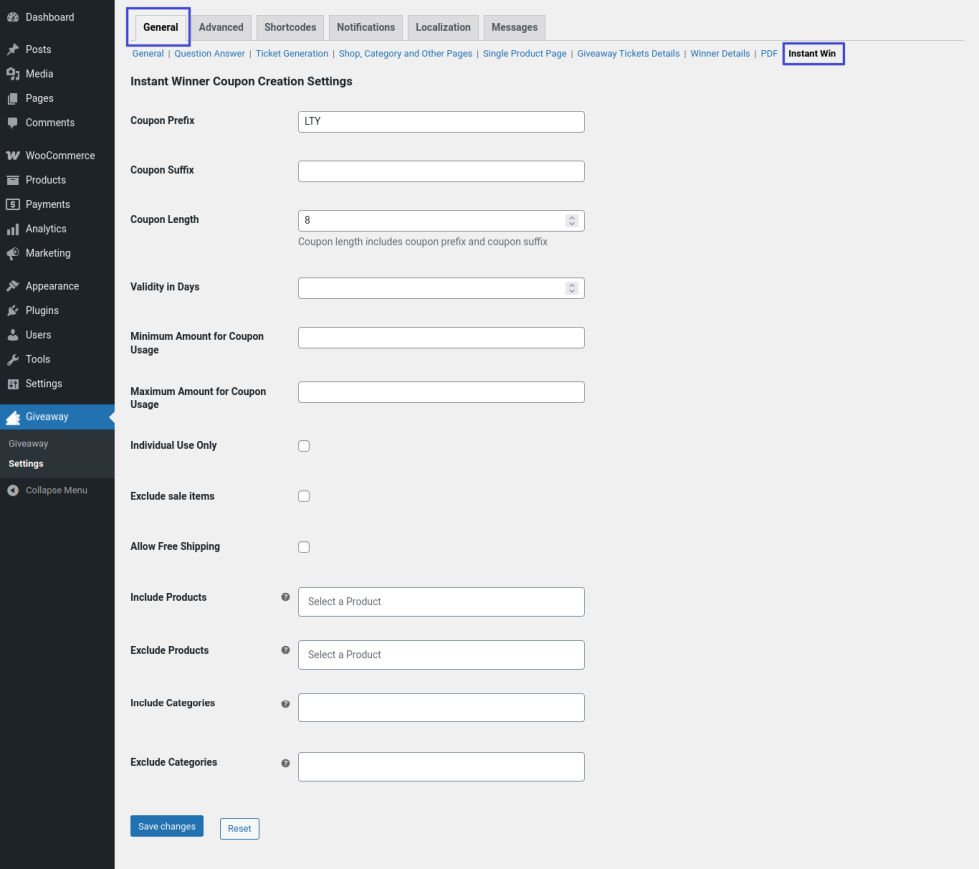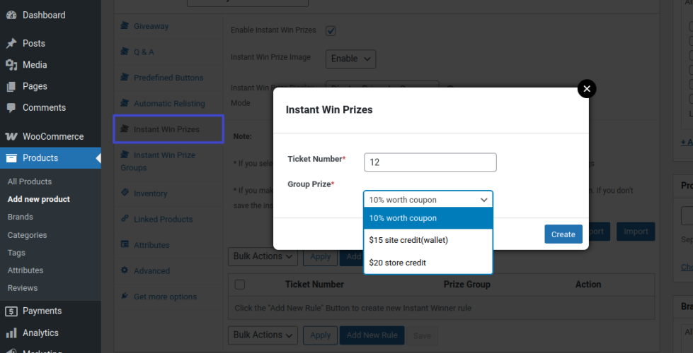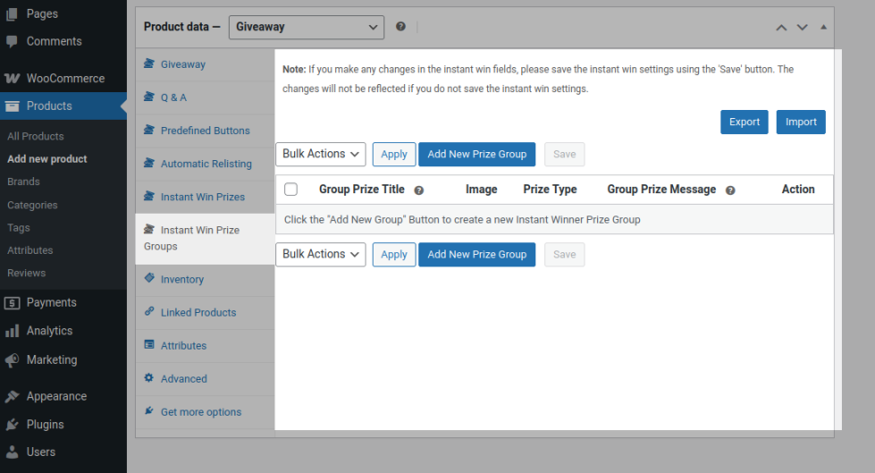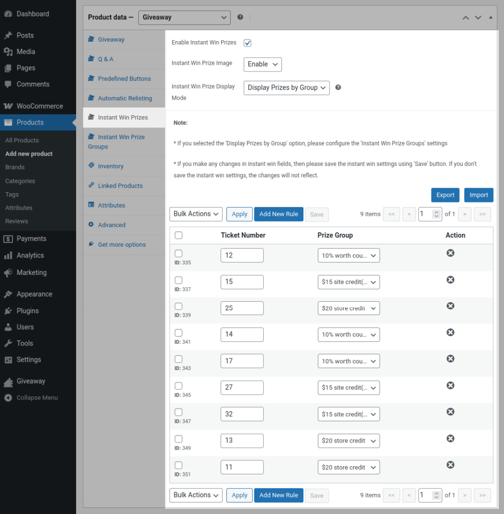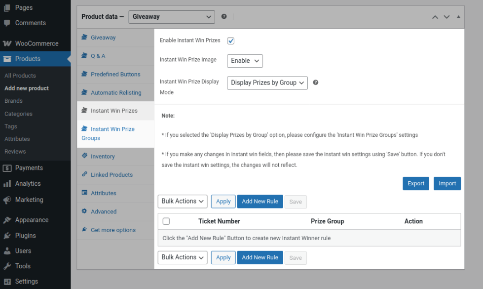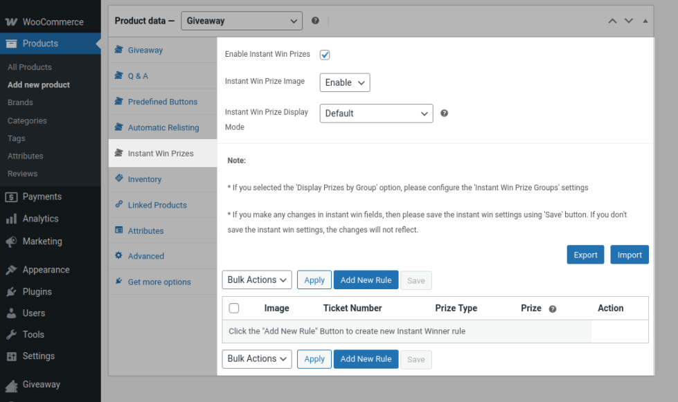 (iii) Instant Win Prizes settings available in Giveaway product settings(Edit product page).