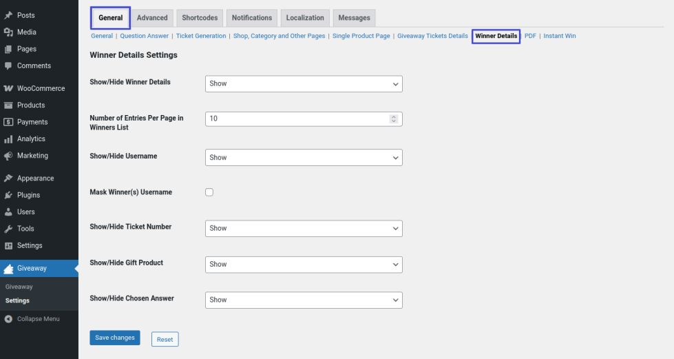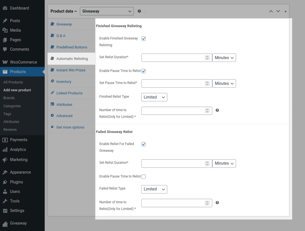 (iii) You can see the settings in Giveaway product settings(Edit product page).