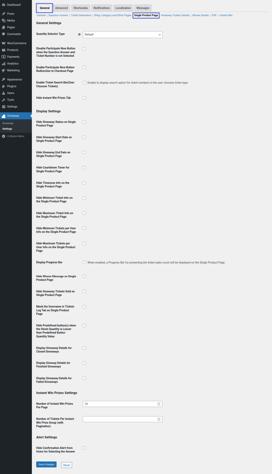 - If you wish to hide Instant Win Prizes tab on the product page, you can do so by enabling the “Hide Instant Win Prizes Tab” option.