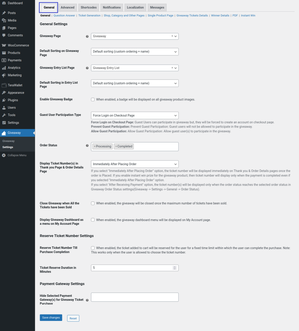 2. Also, the option is available to close the giveaway when all the tickets have been sold.Giveaway -> Settings -> General -> Close Giveaway when All the Tickets have been sold.