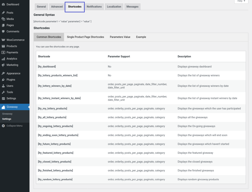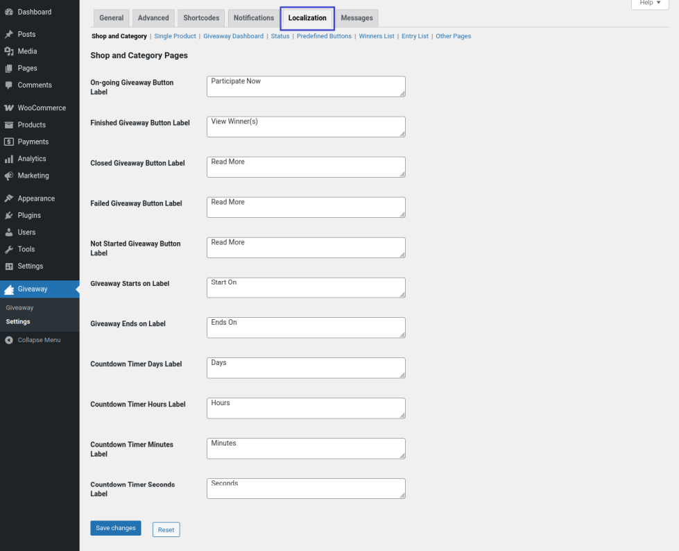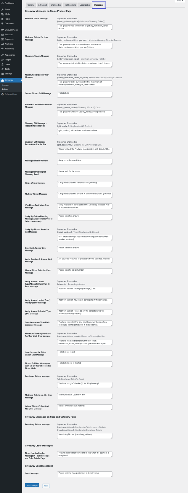(i) You can customize the messages and frontend display using Localization and Messages settings Giveaway -> Settings -> Localization Giveaway -> Settings -> Messages