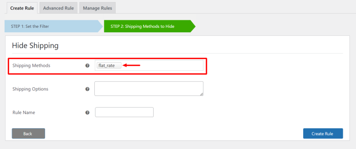 Next, in the hide shipping method settings, we need to select the flat_rate option as shown in the below screenshot.
