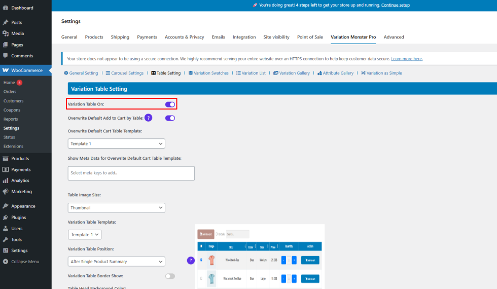 - Go to WooCommerce → Settings → Variation Monster Pro